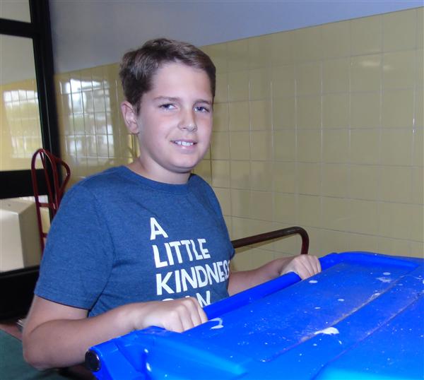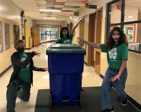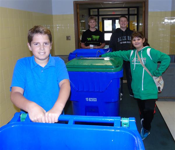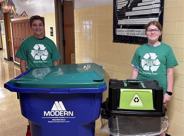 Builders Club volunteers collect classroom recycling every Tuesday